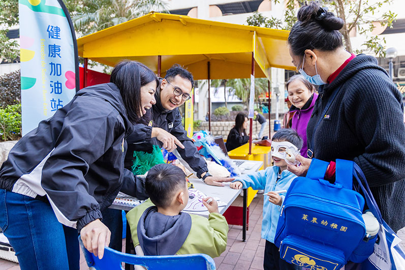 進一步豐富第二階段活動內容,滿足不同群體需求。文化局的“文化傳播員” 會引入不同的文化體驗項目,如說故事、圖書閱讀及分享等;體育局的“健身指導員”則新增跳繩、呼拉圈等趣味器材,吸引兒童參與,促進其心肺功能、協調性及平衡能力等,同時亦增設肌力指標測試,協助成人及老年人評估體能狀況,並依據測試結果提供個人化運動指導;衛生局的“健康促進員”增設免費指 尖血糖檢查服務,回應社區對慢性病預防的健康需求,協助居民及早識別血糖異常風險。