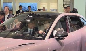 小米集團合夥人、總裁盧偉冰向鄭麗文一行介紹了小米公司的發展情況,以及小米汽車的摩德納技術架構等。在展廳裡一台淡粉色的小米YU7型汽車前,鄭麗文受邀上車體驗,瞭解車輛的各項功能。