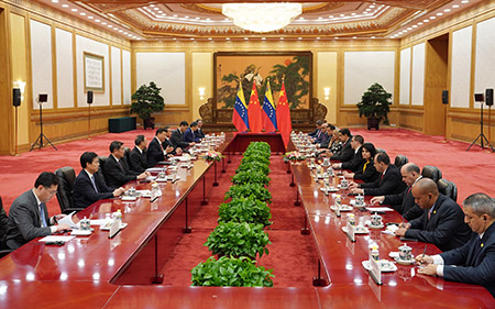習近平歡迎馬杜羅第十次訪華,贊賞馬杜羅高度重視發展中委關係,堅定支持中委合作。習近平指出,中方始終從戰略高度和長遠角度看待和發展中委關係。當今世界不穩定、不確定性增多。面對新形勢新挑戰,中委要協力增進友好互信,創新推進互利合作,持續促進共同發展,引領中委全面戰略夥伴關係邁上新台階,更好造福兩國人民。