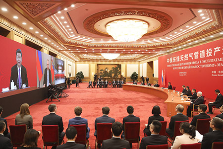 中俄代表分別在黑河、阿塔曼斯卡亞和恰揚金3個管道沿線站發言,向兩國元首匯報:俄方已準備好向中方供氣、中方已準備好接氣。
