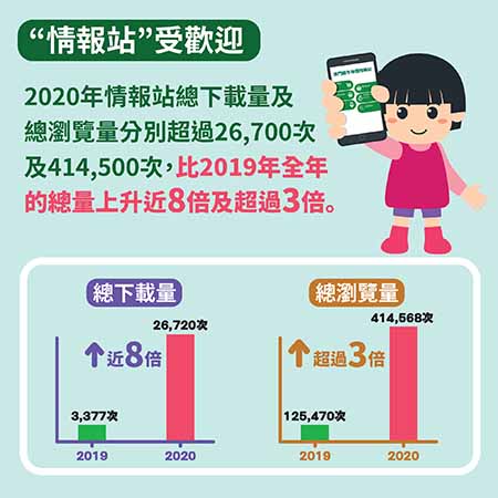 消委會的“情報站”應用程式2020全年錄得26,700多次的下載量及414,500多次的瀏覽量,分別較2019年全年大幅上升近8倍及超過3倍。
