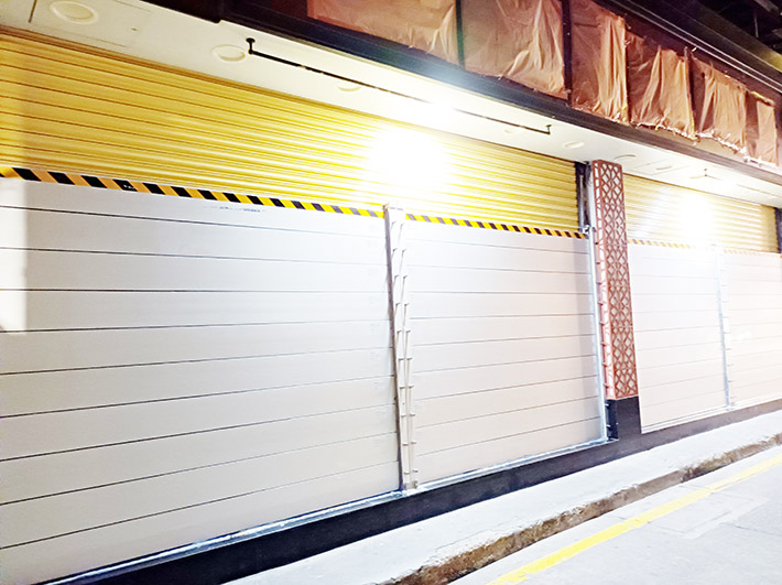 在新馬路有不少商戶亦在關門時裝上防水閘及堆放沙包,不少零售店已將貨品安放較高位置,以防止突如期來的水浸。