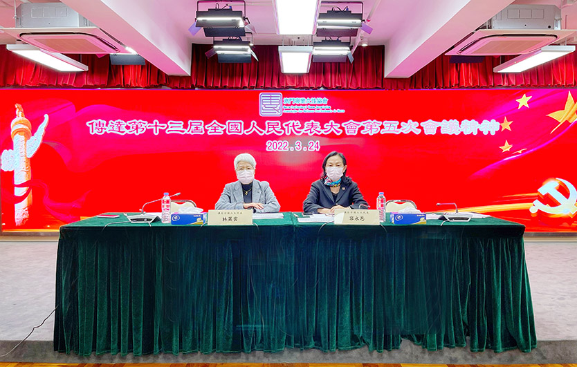 林笑雲及容永恩向出席會員傳達第十三屆全國人民代表大會第五次會議精神, 包括:2021 年國家發展情況及未來發展主要任務;韓正副總理對澳區人大代表提出的期望;香港和澳門選舉第十四屆全國人大代表的辦法;關於第十四屆全國人大代表名額的「決定」等。林笑雲強調,新一屆澳區人大代表選舉辦法的重點是體驗愛國者治澳的原則。