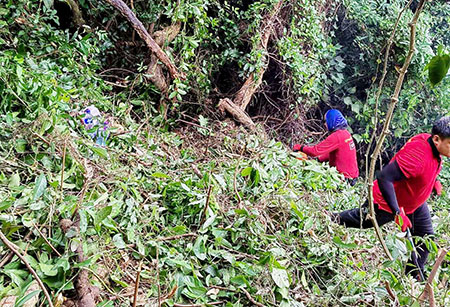 【特訊】近年風災令本澳山林受損嚴重,更導致藤本植物速長,大面積的覆蓋山林,影響樹木正常生長,林區無法自然更新。市政署按序開展山林修復工作,近期於松山周邊開展清除夜花藤、野葛、無根藤以及屬於外來入侵物種的五爪金龍和薇金菊,還有一些枯樹和生活垃圾等工作。完成清理藤本植物後,將視乎松山周邊林區情況開展植樹的前期工作,例如開挖樹穴、回填客土及進行土壤改善等。