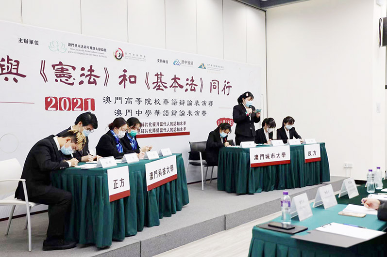 【特訊】為迎接國家憲法日以及持續向澳門高校及中學生推廣憲法和基本法,澳門基本法青年推廣大使協會以及澳門演辯學會聯合主辦的「與《憲法》和《基本法》同行-2021澳門高等院校華語辯論表演賽」以及「與《憲法》和《基本法》同行-2021澳門中學華語辯論表演賽」辯論活動,在11月28日假澳門青年創業孵化中心連續舉行,活動透過辯論形式深入探討社會價值議題,藉此讓參與學生對國家的發展以及澳門社會新形勢有更深的認識,同時提升學生的演辯技巧及思維能力。