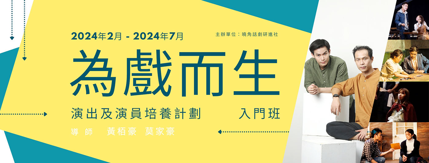 【特訊】曉角話劇研進社第二屆「為戲而生演出及演員培養計劃」現正招募入門班學員,邀請資深劇場人黃栢豪、莫家豪作為重點戲劇導師。參加者將會展開連續六個月集訓,透過戲劇理論、身體訓練及實踐演出等方式,提升表演技巧、即興創作、劇本分析等能力,瞭解舞台各部門的技術運作,見證一個演出的誕生,成為澳門劇壇新力軍!表現優秀的參加者將有機會參與專業劇場演出,在舞台一展所長!