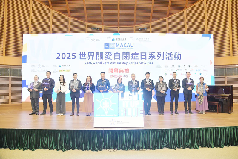 【特訊】 因應聯合國定於4月2日為「世界自閉症關注日」,澳門自閉症協會今年於4月5日假科學館會議中心舉行了澳門2025“世界關愛自閉症日”系列活動開幕禮, 並通過點亮藍燈、音樂及藝術成果展等多項活動,吸引社會各界的廣泛關注,希望社會大眾了解、關注與支持對自閉症群體。