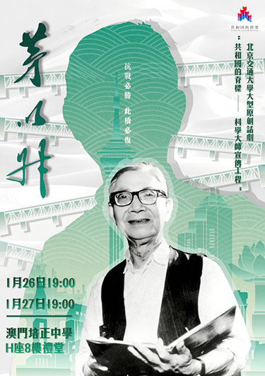 【特訊】為弘揚以愛國主義為底色的科學家精神,傳承科技報國的崇高情懷,由澳門特別行政區政府、中國科學技術協會、中華人民共和國教育部、中華人民共和國文化和旅遊部、中國科學院、中國工程院、共青團中央、中國文學藝術界聯合會共同主辦,多部門聯合推動的科學家精神耀濠江“共和國的脊梁——科學大師宣傳工程”大型原創話劇《茅以升》,將於2026年1月26日至27日在澳門培正中學H座8樓禮堂隆重上演。本次活動門票免費向公眾提供,誠邀澳門各界人士共同走進劇場,感受跨越時代的精神力量。
