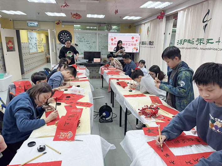 活動中親子們齊心協力運用各式材料製作寓意吉祥的馬年造型裝飾,創作過程溫馨愉快。活動特別設置手寫揮春環節,讓大小朋友一同提筆揮毫,寫下「馬到功成」、「龍馬精神」等新春祝福,現場墨香四溢,洋溢著歡樂喜慶的節日氣氛。