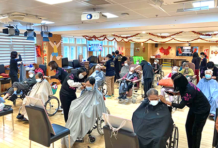 新濠義工於一月下旬探訪工聯九澳護養院,為院舍長者提供剪髮及儀容整理服務,讓長者做好準備迎接新一年的到來。