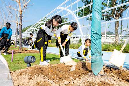 植樹活動於昨日早上進行,一眾嘉賓及師生聽取管護樹木人員介紹樹種後,再一起揮鋤鏟土、澆水灌溉,共栽種約20棵苗木。是次種植的苗木均為“黃金雨”,其花盛放於初夏,會綻放出一串串金黃色的花束,猶如花朵瀑布,鮮明奪目,當花瓣隨風搖曳,更形成一片片如黃金雨飄落的美景,“黃金雨”因而得名。該樹又名阿勃勒,是蘇木科決明屬落葉喬木,常用作行道樹和園林觀賞植物。植樹活動是一年一度澳門綠化週的重點活動之一,今年綠化週於3月7至15日一連9日舉行,舉辦逾40場自然主題活動,市政署期望藉此提升公眾自然生態保育意識,共同推進城市綠化增量提質。