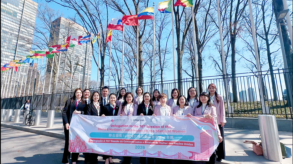 【特訊】聯合國婦女地位委員會第七十屆會議(CSW70)於3月9日至19日在聯合國總部舉行。澳門婦女聯合總會派出歷屆最龐大的非政府組織代表團參與,成員由婦聯青年協會及國際事務交流培訓協會成員組成,積極響應國家主席習近平在全球婦女峰會重要講話中提出「要支持婦女擔當時代責任,深度參與全球治理」的建議,為澳門女性及青年搭建國際交流平台。期間代表團分別參與國家邊會、籌組兩場平行會議以及藝術市集等,發揮民間外交的積極作用,向世界講好中國故事、澳門婦女發展故事。