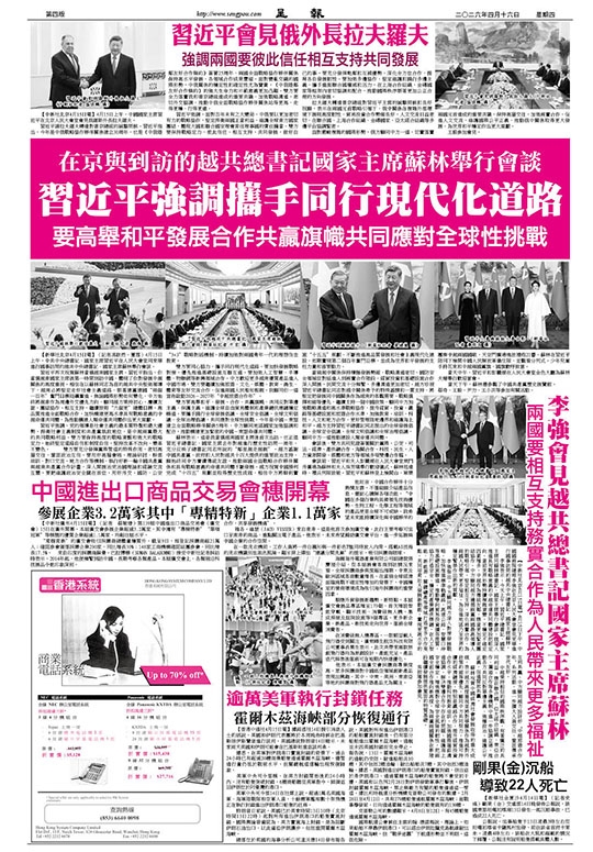 中越秉持相似的國際秩序觀,有著廣泛的共同利益,應在聯合國、亞太經合組織、東亞合作、瀾湄合作等多邊機制中進一步協調立場,推動各方共同反對單邊主義、強權政治,維護公平正義,促進開放共贏。