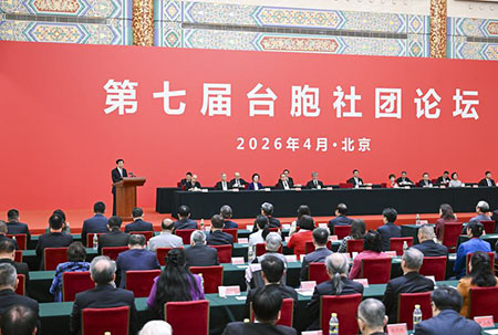 【中新社北京4月17日電】第七屆台胞社團論壇17日在北京舉行。中共中央政治局常委、全國政協主席王滬寧出席開幕式並講話。