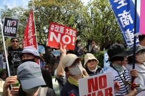 【中新社東京4月19日電】(朱晨曦 范珺華)大批日本民眾19日在位於東京的國會議事堂前集會,抗議高市早苗政府強推修憲、企圖解禁殺傷性武器出口等破壞和平憲法的動向。