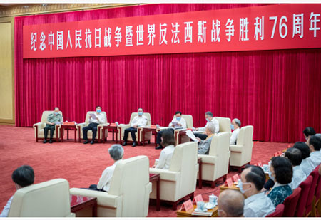 座談會上,中央統戰部、中央黨史和文獻研究院、中央軍委政治工作部負責人和抗戰老戰士、青年學生代表先後發言,從不同角度回顧了中國人民抗日戰爭的崢嶸歲月,闡述了中國人民抗日戰爭暨世界反法西斯戰爭勝利的偉大意義,充分表達了銘記歷史、緬懷先烈、珍愛和平、開創未來的決心和信心,充分表達了堅定不移走和平發展道路的崇高願望。