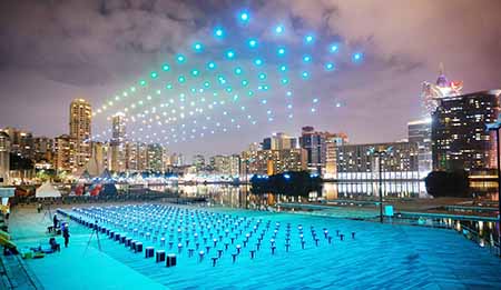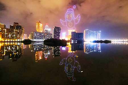 “翱遊澳門無人機表演盛會”為夜空的視覺藝術表演,利用科技、2D及3D立體聯動設計、燈光和音樂等元素,綻放流光溢彩,點綴澳門夜空,為居民及旅客帶來新的夜間娛樂體驗,深化“旅遊+”跨界融合。