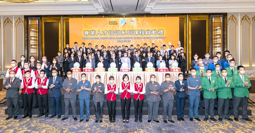 「專業人才培訓系列課程」啟動禮今天假美獅美高梅舉行,出席之主禮嘉賓包括澳門特別行政區政府勞工事務局局長黃志雄、職業培訓廳廳長張瑋、中央人民政府駐澳門特別行政區聯絡辦公室經濟部處長孫耀華、澳門生產力暨科技轉移中心理事長關治平、澳門工會聯合總會副理事長蔡錦富、澳門食品安全管理學會培訓總監徐穗明、美高梅總裁及首席營運官王志琪、人力資源執行副總裁余婉瑩,以及酒店業務高級副總裁狄艾文等。現場亦設置成果展示區,讓已完成證書課程的設施管理﹑酒店房務及餐飲部團隊成員與嘉賓交流互動;當日更特邀餐飲業企業代表參加食品安全講座及參觀後勤廚房區域,了解美高梅的食品安全管理標準,鼓勵他們考取食安證書,提升競爭力。