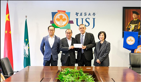 長期致力國際化發展,這個願景與聖若瑟大學多元文化的學術環境的目標一致,透過是次捐贈,楊博士再次展現了商界如何成為推動社會進步的強大力量。聖大出席捐贈儀式的代表包括:商學及法律學院院長劉鈺韾教授,國際事務處處長 Paula Mota女士,國際事務處主任 Paulo Albuquerque 先生及秘書及媒體公關處主任 Jerusa Antunes 女士。