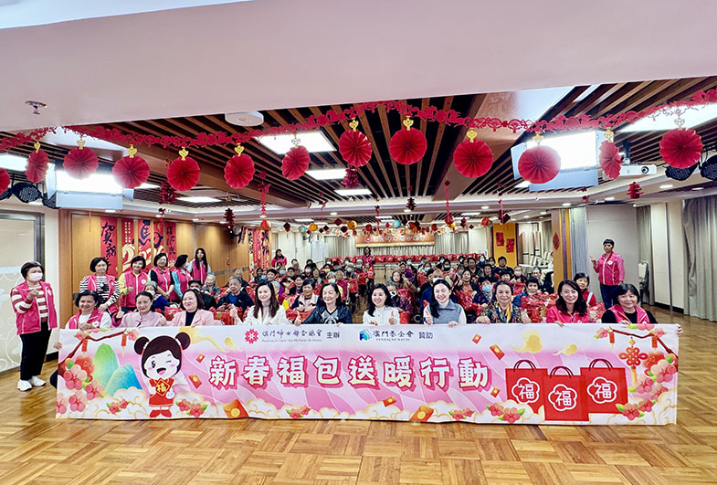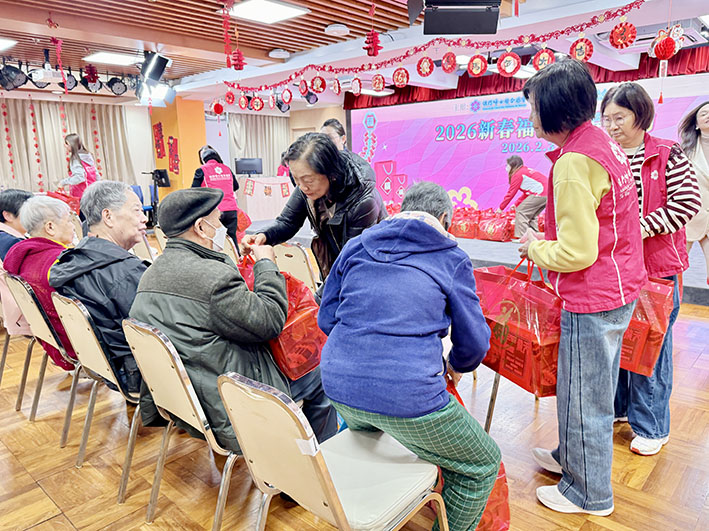 婦聯昨午舉行「2026新春福包送暖行動」,婦聯監事長容永恩、副會長周霓、盧潔兒、何凱玲、黃潔貞、副理事長羅萍、歐陽月勝、何嘉欣、副監事長蔡彩蓮,向在場長者派送福包,送上新年祝福。