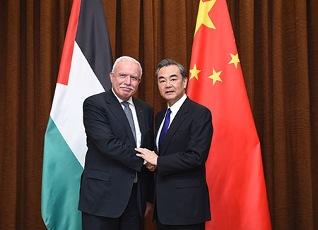 王毅表示,中方支持阿拉伯和平倡議,支持“兩國方案”,支持建立一個以1967年邊界為基礎、以東耶路撒冷為首都、擁有完全主權的、獨立的巴勒斯坦國,支持一切有利於緩和巴以局勢的努力。 中方重視日前阿盟峰會重申阿拉伯國家在巴勒斯坦問題上的共識。“我們認為,儘管中東地區熱點問題此起彼伏,但巴勒斯坦問題仍是中東地區的根源性問題。”