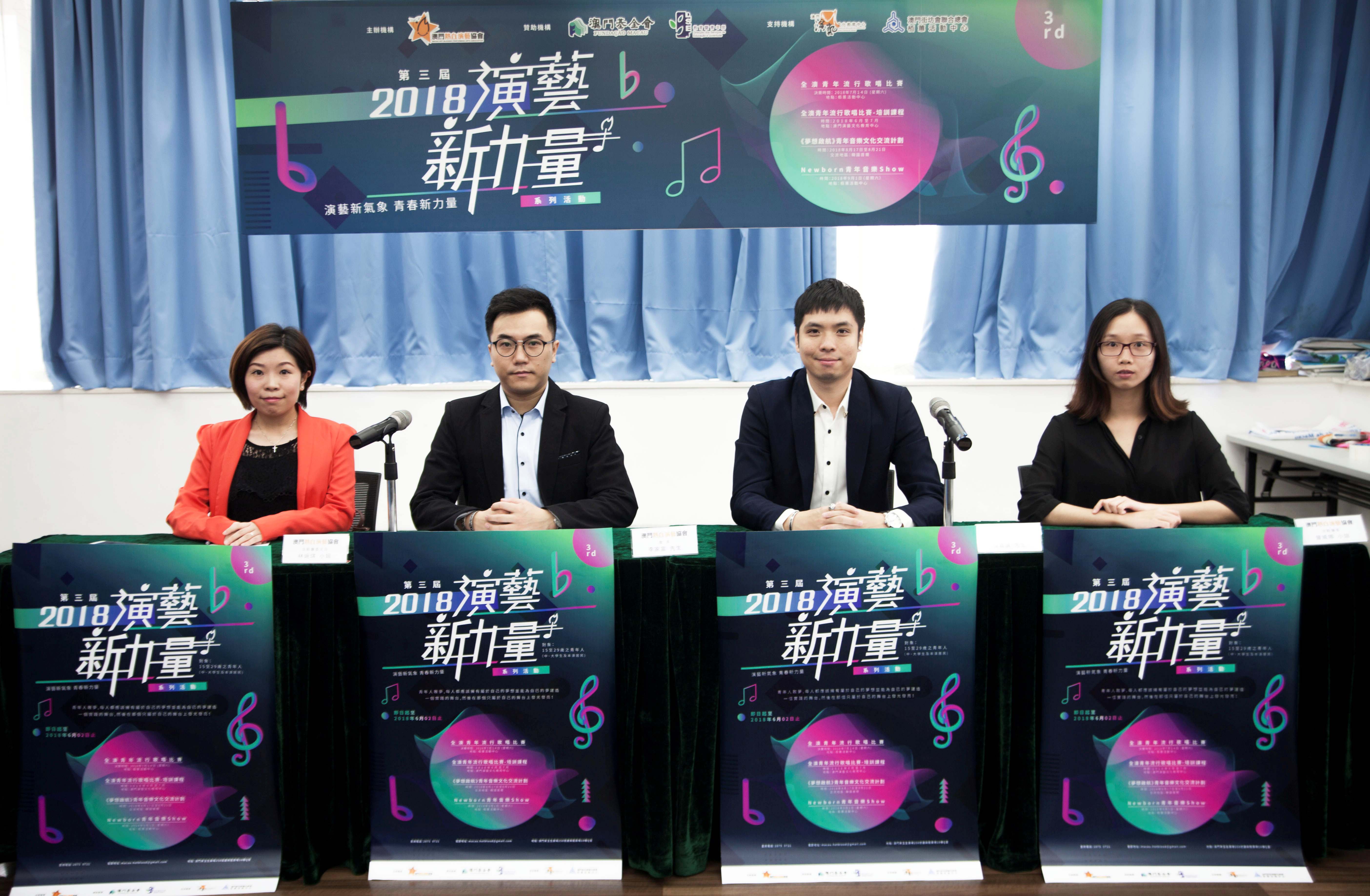 活動籌委主席林婉琪介紹活動分為四個部份,活動一為「全澳青年流行歌唱比賽」,讓青年人透過歌唱去表達夢想,大會會挑選出最具有潛力的12名參賽者進入決賽,報名時間由即日起至6月5日,對象為十五至二十九歲的青年人,費用全免,獎項設有冠亞季軍,分別可獲獎盃及二千元、一千元及五百元獎金,另設「最具人氣大獎」、「最具演藝力量形象大獎」分別可獲得獎盃及獎金五百元;活動二為「歌唱比賽-培訓課程」入選的參加者開辦歌唱技巧培訓課程,讓參加者增強實力,塑造出自己的獨特印象。