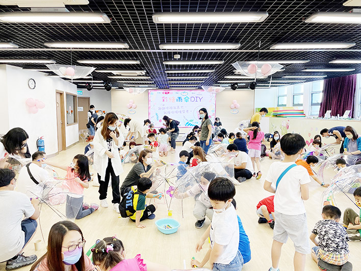中心早前分別舉辦兩場工作坊,共吸引八十四個家庭參與。自由藝術工作坊為方便雙職家庭參與,採用免費、無需報名的形式,早前以「彩繪雨傘DIY」為活動主題,提供色彩繽紛的顏色筆,讓親子盡情發揮創意及想像力,在雨傘上自由彩繪,製作獨一無二的七彩雨傘;家長在活動過程中陪伴兒童及全程參與,藉培養父母聆聽子女的意見,促進構建和諧融洽的親子關係。