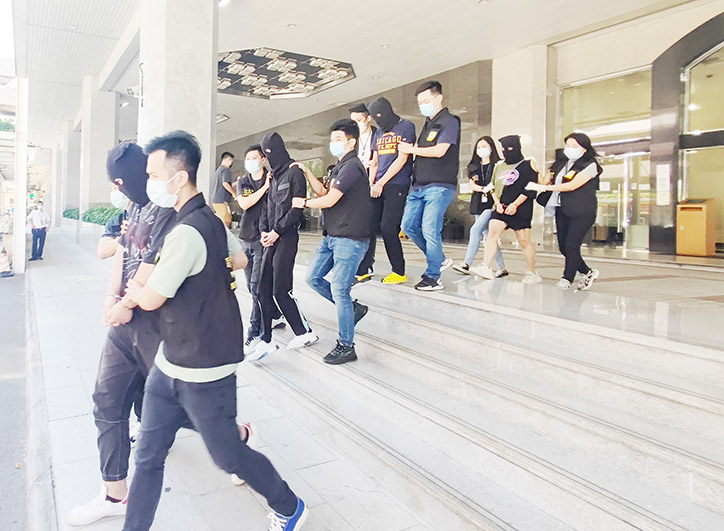 被捕四人包括三男一女,男的均二十多歲,分別姓鍾,無業;姓李,貿易行外勤;姓謝,貿易行東主,女的姓譚,四十多歲,貨倉管理員,涉及巨額詐騙、犯罪集團被送交檢察院處理。案中兩名男事主為內地人。