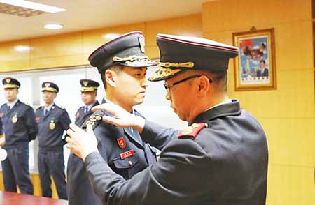 【特訊】消防局於四月十七日下午,在消防局總部暨西灣湖行動站舉行了晉升至消防總長的儀式。儀式由消防局局長梁毓森消防總監主持,其他出席官員還包括代副局長林俊生消防總長、以及各部門主管級官員。晉升儀式中,領導為獲晉升的官員戴上新肩章,並送上熱烈祝賀。梁毓森局長在儀式上勉勵官員要克盡己任、廉潔奉公、遵守法紀,繼續在崗位上發揮所長,為澳門社會的安全穩定做好各項工作,貢獻力量。