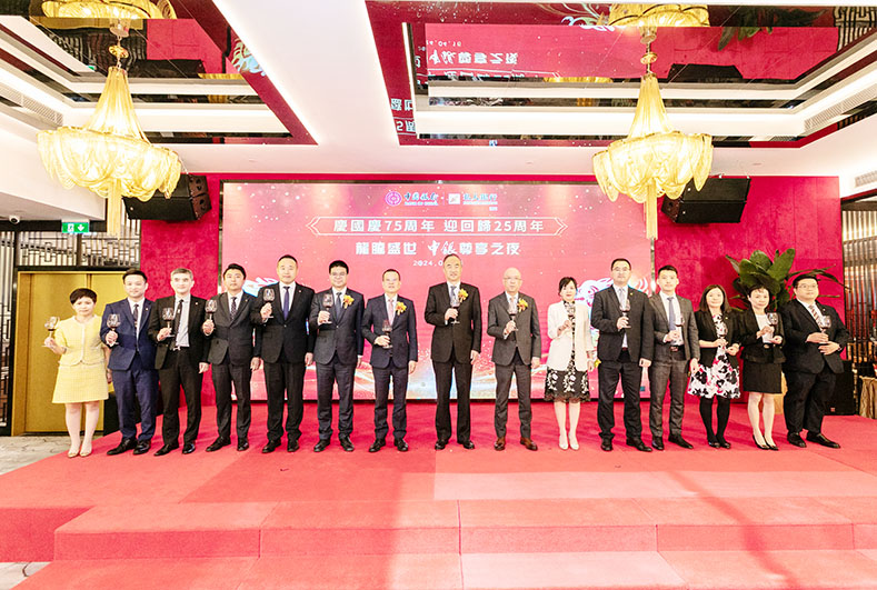 【特訊】澳門中銀於4月16日晚上7時假澳門金銀島名勝世界酒店舉辦“慶國慶75周年 迎回歸25周年 龍騰盛世,中銀尊享之夜”私銀客戶交流晚宴。中國銀行(澳門)股份有限公司董事長李瑞強、總裁陳曉平、副總裁陳榮達、董事許志瑜及近百名中銀私銀客戶出席本次晚宴,共迎雙慶之年。
