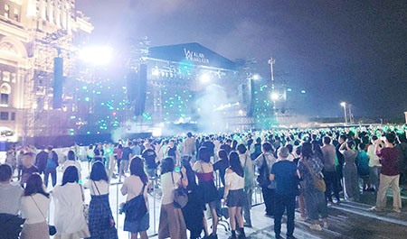 昨晚八時正音樂會正式舉行,大批樂迷到場觀賞,觀眾隨著音樂揮動發光手環,亦有不少人在音樂會開場後陸續入場,工作人員忙於為觀眾驗票及戴上活動手環。現場餐飲貨櫃有部分亦排起人龍。有市民稱,現場氣氛熱烈,氛圍不輸海外的音樂節等活動,他又建議現場增設更多餐飲攤位,提供更多種類的食品;亦有駕車到場的市民稱,周邊車位緊張,自己要將車停泊於較遠的位置再步行至場地,建議優化泊車設施。