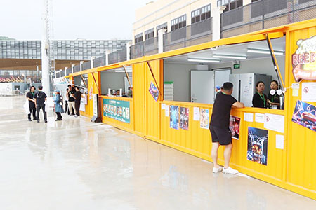 現場亦設有六個餐飲貨櫃提供輕食餐飲服務。有商戶稱,因為要配合電子音樂的場景,主要買啤酒和熱狗,始終是第一次商演,我覺得這是非常好的機會推廣自己的品牌,亦藉著這個機會多些接觸這類型的活動,希望之後有多一點機會再參加。另有商戶稱,當然希望生意額好一點,尤其現時中小企很難經營,因為我們都有一些特色,我們做素菜的,但都是以葡式為主,天氣不好生意肯定有影響,因為都投了標唯有照做,大不了少一點生意。