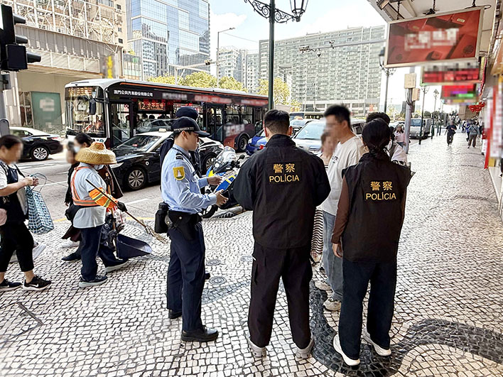 【特訊】在警察總局統籌下,治安警察局於週日(15日)持續進行“冬防行動2026”,以維護本澳良好治安環境。治安警察局轄下澳門警務廳、海島警務廳、情報廳及交通廳共派出47名人員,分別在澳門中區、新口岸區、離島區及路氹金光大道一帶加強截查可疑人士,並進行不定點查車行動,以預防及打擊各種不法行為和犯罪活動。