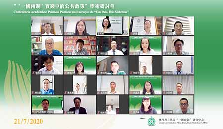 【特訊】為匯聚不同領域教授學者的專業視角,全面集中地就「一國兩制」下的中央與地方關係、防疫抗疫協作機制、公共衛生、經濟社會發展統籌、「一國兩制」與國家安全等「一國兩制」理論與實踐面臨的新問題作出探討,澳門理工學院「一國兩制」研究中心於二○二○年七月廿一日以線上方式舉辦了「『一國兩制』實踐中的公共政策」學術研討會。是次線上會議共吸引逾百位人士報名參加,現場暢所欲言、互動熱烈。