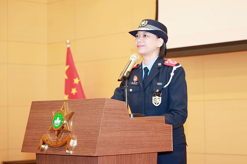 她勉勵晉升人員要秉持行政長官「奮發同行、持正革新」的施政理念;同時亦須牢記保安司司長「慎獨、慎微、慎初」的鄭重叮囑,在執法時遵守依法用權及謹慎用權的準則,堅持「執法為民、服務為民」的初心,奉行「護國守澳,忠廉實幹」精神,領會「蓮結一心,共護城安」的核心理念,展現「蓮花警察」良好風貌;並強調,晉升既是肯定亦是重托,與全體晉升人員共勉「忠廉鑄魂擔使命,實幹護澳守初心」,期望大家忠誠履職、勇於擔當,為維護澳門繁榮穩定、推動「一國兩制」行穩致遠貢獻最大力量。