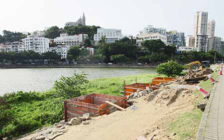 【特訊】為改善西灣湖沿岸及周邊行人道的步行環境,市政署正分階段開展西灣湖景大馬路至何鴻燊博士大馬路行人道的優化工程,將重鋪路面並新增綠化設施,有關優化工程並不包括民國大馬路之一段,而曾於初步構思時提出的木棧道,在聽取大眾意見後已擱置。