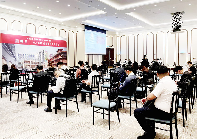 【特訊】澳門主題公園渡假村與勞工事務局於4月28至29日及5月8 至9 日分別合辦兩場大專生及本澳求職者招聘日,透過直接面談及即場面試超過270人。通過是次招聘日,澳門主題公園渡假村冀能為求職者提供就業機會及促進本地居民就業,發掘本澳專才。