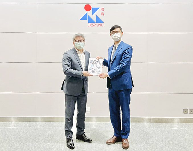 【特訊】日前,澳門中華新青年協會一行在會長周永豪帶領下拜訪體育局,獲潘永權局長接見。周永豪表示,新青協一直秉持“專注為青年”的宗旨,致力推動青年身心健康發展,並積極關心青年一代的康體需求。協會的健康促進範疇也致力推廣健康教育工作,積極提升市民尤其是青年的健康素養和運動技能。周永豪期望日後新青協與局方保持恆常溝通,交流年輕人對體育政策的意見,協力推動本地體育發展。其後,新青協代表就設立統一場地租借及資訊平台、體育用地及體育設施規劃、全運會義工招募等議題和局方進行深入交流