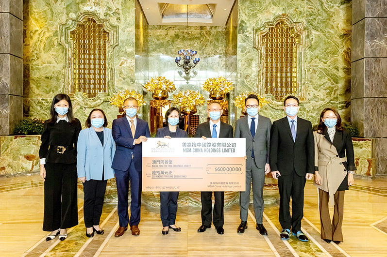 支票捐贈儀式昨天(9日)假澳門美高梅舉行,美高梅中國控股有限公司聯席董事長及執行董事何超瓊、美高梅總裁、首席戰略及財務官馮小峰、人力資源行政副總裁余婉瑩與公共及社會事務副總裁王如茵將支票贈予同善堂,並由同善堂值理會主席崔世平、值理蔡明威、李俊鳴與莊麗晶代表接收。雙方在支票交贈儀式後互相交流,就本澳慈善工作交換意見。