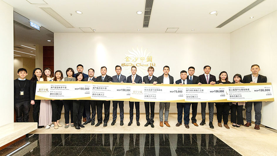金沙中國娛樂場賭桌與博彩效益優化高級副總裁高博賢聯同經營判給行政管理及博彩規章制度副總裁李耀麟3月8日在澳門威尼斯人舉行的支票捐贈儀式上,向五間負責任博彩社會服務機構代表致送支票。款項將用作支援它們在社區推動負責任博彩活動,如負責任博彩親子家庭推廣日、親子財務管理活動、工作坊、培訓、分享會,製作負責任博彩短片以及問答遊戲等。