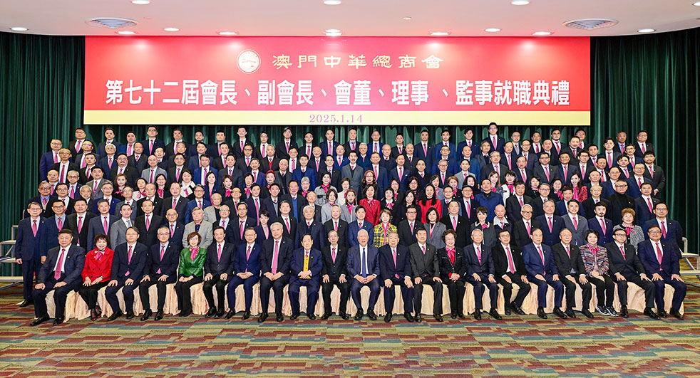 【特訊】澳門中華總商會於一月八日舉行了第八十三次會員大會,會上選出了第七十二屆會長、副會長、會董和理事、監事,崔世昌獲選為會長。昨(十四)日下午,該會第七十二屆理事會、監事會分別舉行了第一次會議進行互選,馬志毅及中國工商銀行(澳門)股份有限公司(高明)獲選為理事長及監事長,隨即就職視事。晚上,該會會長崔世昌在會址設晚宴款待各位副會長、會董、理事、監事同人。全國政協副主席、中總永遠會長何厚鏵;中總永遠會長馬有禮、永遠榮譽會長許世元等應邀出席,並與新一屆中總會務負責人在會址馬萬祺先生紀念堂合照留念及晚宴。