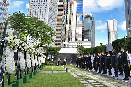 香港特區行政長官林鄭月娥和政府高層官員出席儀式。紀念儀式包括奏唱國歌、升旗、警察步槍儀仗隊鳴槍致敬、全體出席者默哀及鞠躬致敬。