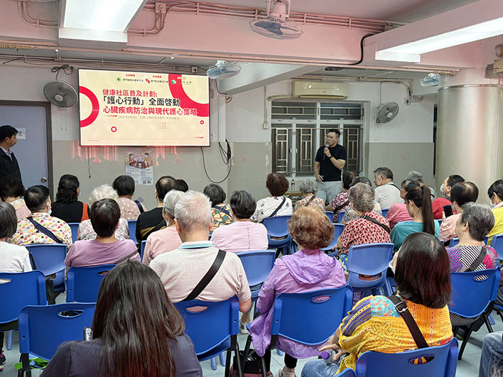 第二場講座為澳門製造業總工會屬下會員及職工舉辦,由心臟科主治醫生朱民峰醫生主講。朱醫生以淺顯易懂的方式,剖析高血壓、冠心病等常見心臟疾病的成因與防治策略,並介紹現代醫療科技進展。他強調透過健康飲食、規律運動、定期檢查及正確用藥,可有效管理心臟健康。互動環節中,長者們就日常保健積極提問,朱醫生均耐心解答。