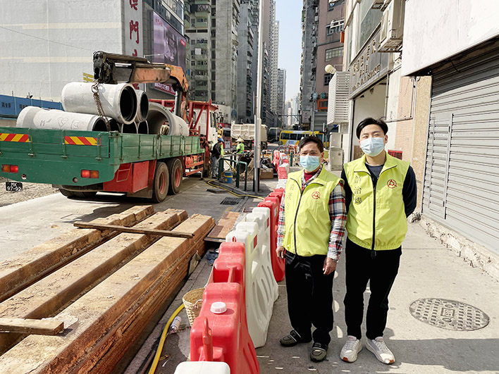 【特訊】慕拉士大馬路下水道第一階段工程正式開展,期間實施多項臨時交通措施,為了解工程期間各項安排對區內交通及民眾的影響,民眾建澳聯盟副理事長袁漢均及許治煒,日前於現場了解施工情況,聆聽及收集居民意見向政府反映。