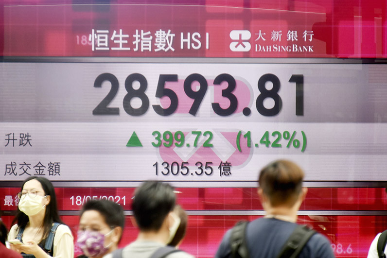 【香港中通社5月18日電】(記者 李冰琪)香港股市18日升399點,收市報28593點,升幅1.4%,全日主板成交額1305億港元。藍籌股接近全線上升,滙控升1%;中移動計劃回歸A股,股價升近3%。