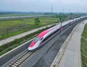 【中新社雅加達11月9日電】(記者 林永傳)當地時間11月9日,隨著一列中國製造的高速動車組緩緩駛出萬隆德卡魯爾站,印尼雅萬高鐵試驗段接觸網熱滑試驗全面展開。這也是該動車組首次在雅萬高鐵線路上亮相。