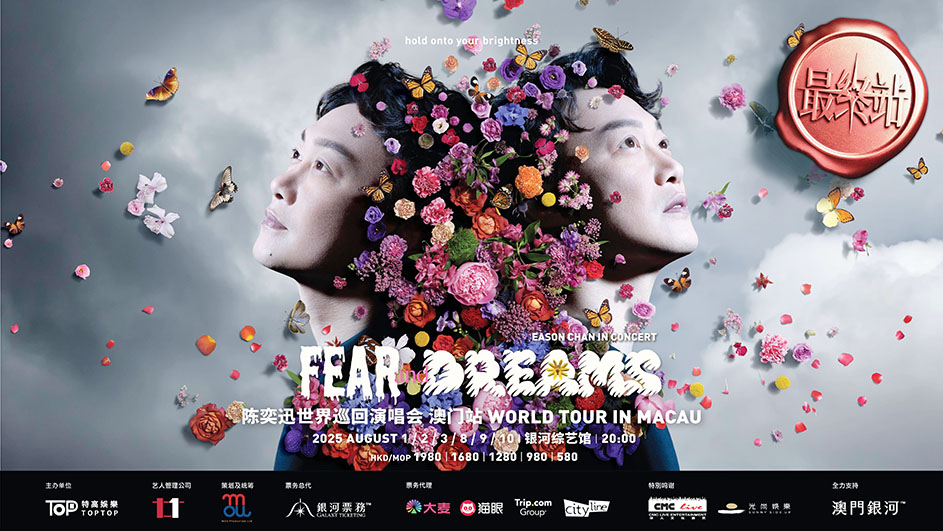 陳奕迅 FEAR and DREAMS 世界巡迴演唱會 - 澳門 (最終站)演出時間:2025 年 8 月 1 至 3 日及 8 至 10 日,演出地點:銀河綜藝館。