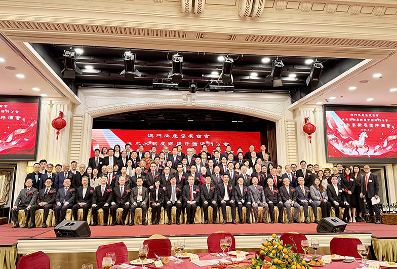 澳門地產發展商會、世界不動產聯盟中國澳門分會昨午假萬豪軒酒樓舉行丙午年新春團拜酒會。行政長官代表、運輸工務司司長譚偉文等嘉賓出席,場面熱鬧。