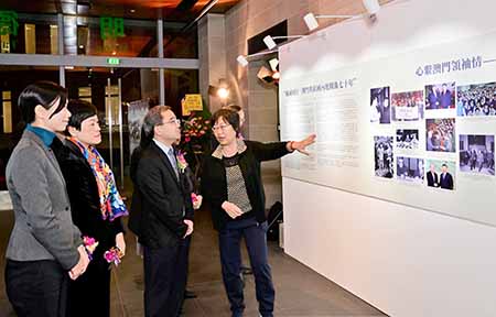 【特訊】澳門理工學院於昨日在該學院明德樓展覽廳舉行「風雨同行,共創輝煌──澳門與祖國內地關係七十年暨澳門回歸二十周年」展覽開幕典禮。中聯辦教育與青年工作部副部長苟人民、澳門理工學院副院長李雁蓮、華僑報社長鄭秀明、澳門中華教育會會長陳虹、澳門公職教育協會理事長劉文堯、資深教育工作者劉羨冰、攝影師陳顯耀、澳門理工學院人文及社會科學高等學校代校長林發欽等擔任主禮嘉賓。