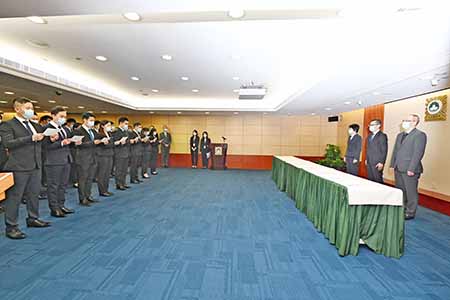 就職儀式上,薛仲明局長向一眾就職的首席刑事偵查員道賀,除勉勵獲晉升的人員恪守本份、盡責履職外,亦重申司警局極其重視轄下人員的職業操守和道德素養,督促各人員必須時刻嚴於律己和廉潔奉公,並持續提高專業知識及執法水平,以回應社會大眾對警務人員的期望。